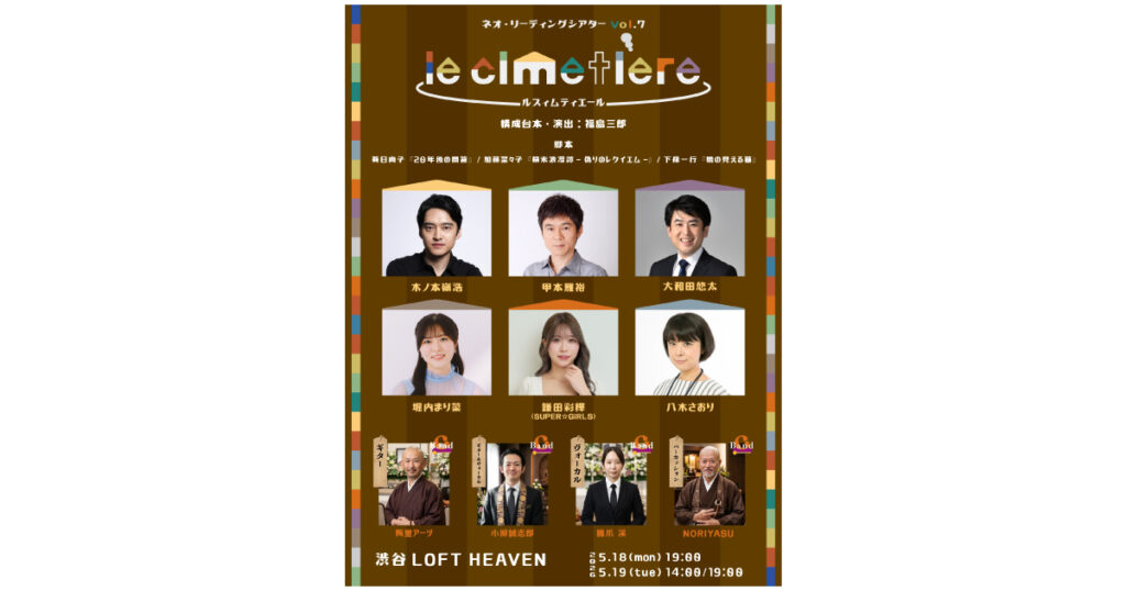 リーディング劇「ルスィムティエール」 開催日:2026/5/18(月)・5/19(火)会場:渋谷LOFT HEAVEN https://www.loft-prj.co.jp/heaven/5/18(月)19:00回(18:30開場)5/19(火)14:00回(13:30開場)5/19(火)19:00回(18:30開場)ルスィムティエール、その墓地は見晴… -